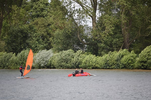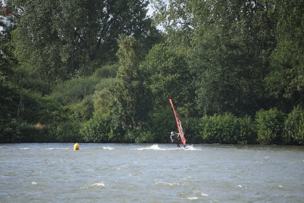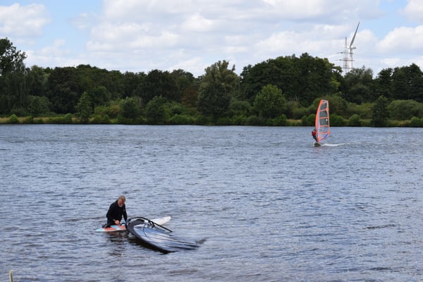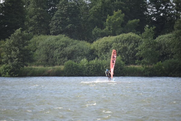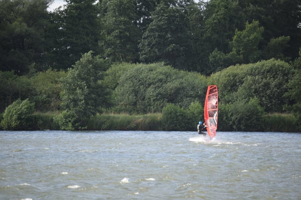 Veel wind aan de plas